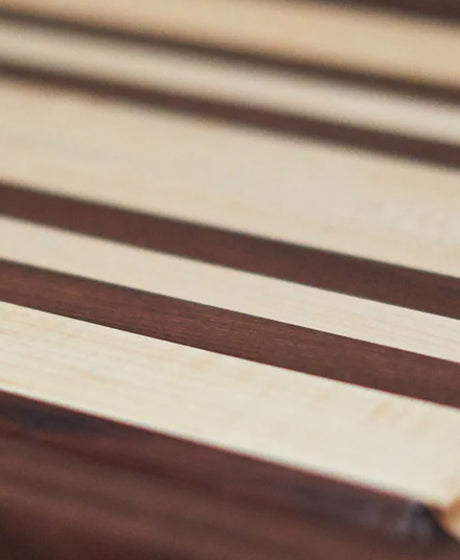 These boards are crafted by gluing together the edges of wooden strips, showing the long, straight grain of the wood. They are durable, lightweight, and less prone to knife marks compared to softer surfaces, making them ideal for everyday use.